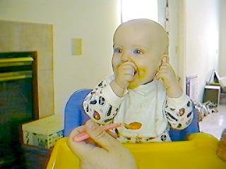 We also gave him a bite or two of applesauce. This isn't his first try,
